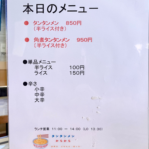 タンタンメン 850円(半ライス付き)