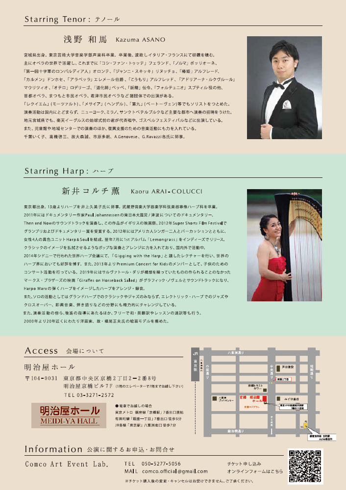 テノール歌手:浅野和馬、ハープ奏者:新井コルチ薫が出演