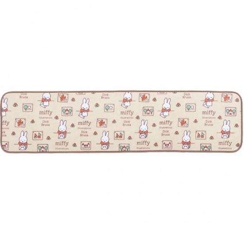デザインがほのぼのとして可愛い、ミッフィーのマットのお知らせです。柔らかいベージュの生地に、お手紙を書いているミッフィーのデザインが総柄になったマット。見ているだけでほっこりしてくるナチュラルさは、お部屋のテイストを選ばないデザインです。
