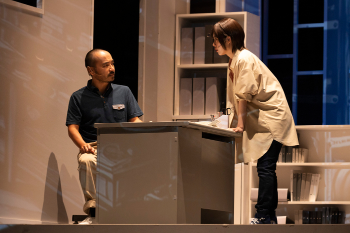 廃業に追い込まれかけている植草親子は、少し頼りない父(岩崎う大)とハキハキした娘(礒部花凜)の漫才のようなやりとりが楽しい。岩崎らしいシュールで哀愁漂うセリフに、客席からも笑い声が上がっていた。また、勘の鋭い刑事・篠井(末永みゆ)、事件の参考人・船曳(槙尾ユウスケ)、ニルヴァーナ幹部・佐々倉(土屋翔)、をはじめとするキャラクターたちも強い印象を残している。