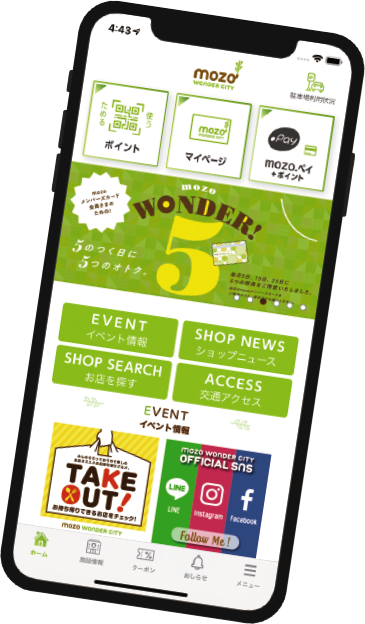 mozo メンバーズカードと2020年に誕生したmozoアプリの会員数を合わせると、現在20万人を超えるお客様にご利用いただいております。mozoPLUSでは、ポイントやmozoアプリ会員情報※の連携を実装しました。mozoアプリ会員の方は番号情報等を連携することで、リアルSCでの買い物とmozoPLUSを介したオンラインでの買い物のどちらでもポイントを利用し、貯めることができます。mozoアプリとmozoPLUSの連携により、お客様の利便性向上はもちろんのこと、購買データを蓄積しSCおよび専門店の販売促進にも活用することで、商圏のお客様に合わせたカスタマイズと満足度の高いSC運営を行っていきます。