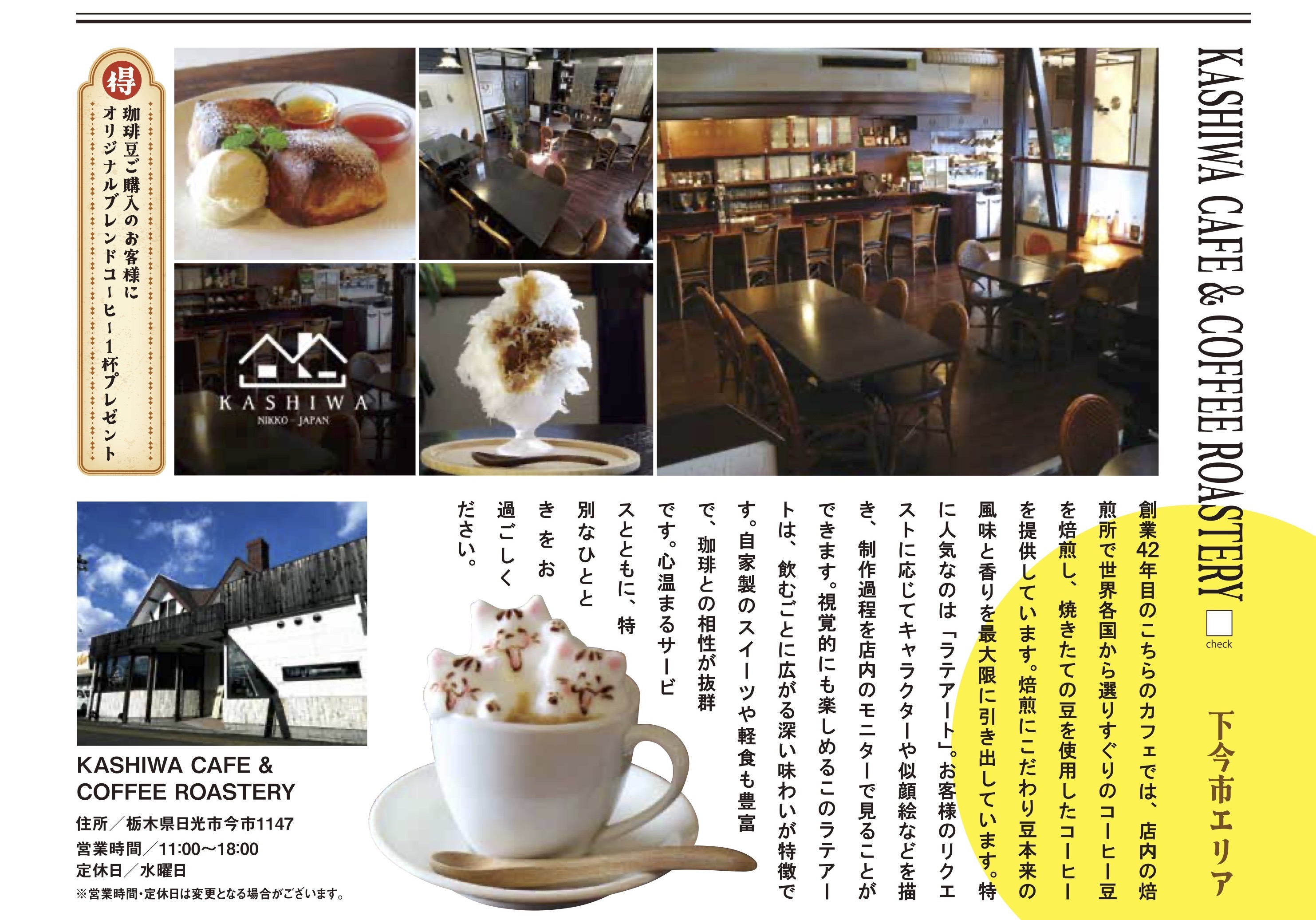 KASHIWA CAFÉ&COFFEE ROASTERY、日光ランドマーク、二宮堂、ワタナベ食堂、パン工房 輝麦、御菓子処 青柳、珈琲茶屋 珈香和 cocowa、BENTO CAFE KODAMA