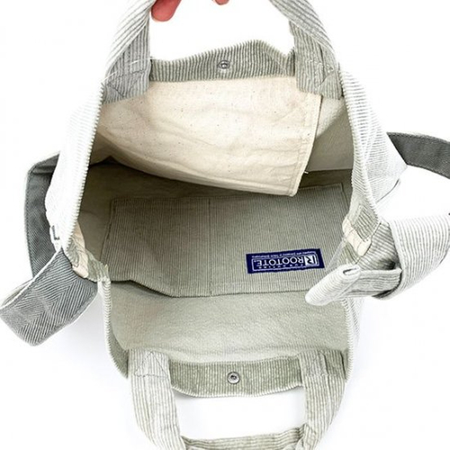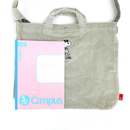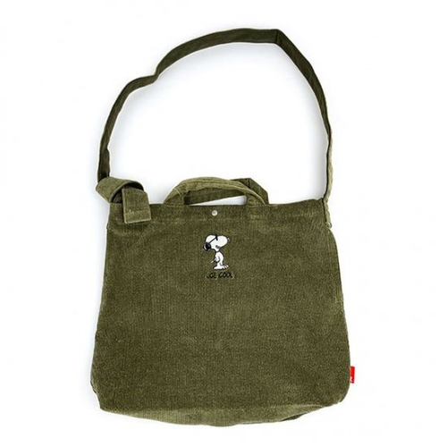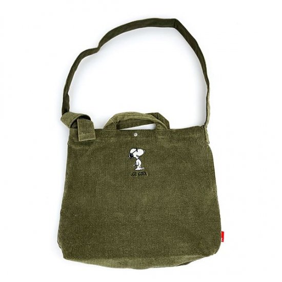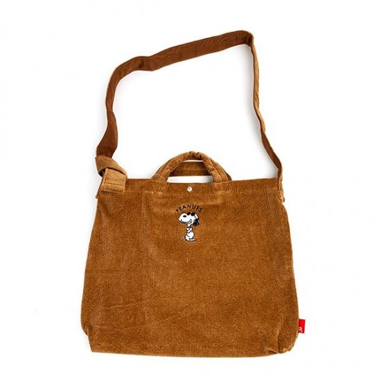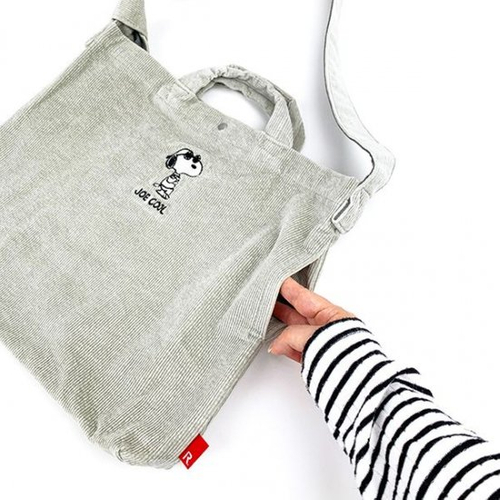 ショルダーとしても手持ちとしても使える2WAY仕様のバッグ。ショルダーヒモを使わない時はバッグの中にサッと収納して使えます。「コーデュロイ生地とスヌーピーはマッチするんだな」と感じていただける一品となっています。これからの季節にもピッタリの装い、バッグから季節感を出してみませんか?