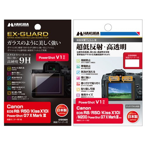 ハクバ写真産業株式会社(本社:東京都墨田区)は、ガラスと同じ硬度9Hで割れに強い「EX-GUARD」タイプと業界最高クラスの透明度を誇る「III」タイプの液晶保護フィルムに、Canon PowerShot V1用の2製品を発売いたします。