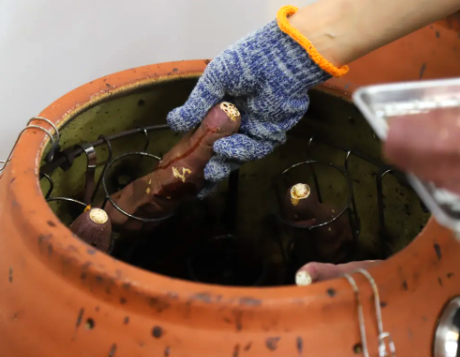 「芋伸」の壺焼き芋は、壺の中の反射熱を利用し、じっくりと時間をかけて焼き上げることで、さつまいもの甘さと旨みを最大限に引き出します。