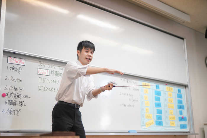 IPU・環太平洋大学に、学生と教員が共に学び、成長する「共育ラボ」が誕生しました。このラボでは、教員と学生が協働して教育改革に取り組むユニークな試みが行われています。模擬授業、相談会、勉強会、教育イベントの企画立案を通して、学生・教員がともに教育力を深め、大学教育の改革と次世代の教育者の輩出に着手しています。7月23日(火)に、第1回の模擬授業(英語)が実施されました。