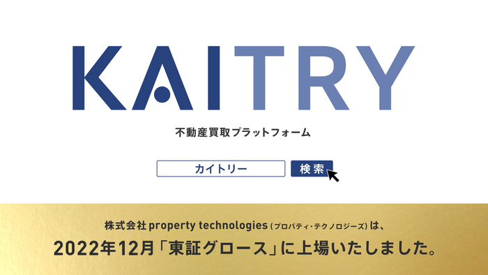 株式会社property technologies(本社:東京都渋谷区、代表取締役社長:濱中 雄大、証券コード:5527、以下当社)は、2023年2月4日(土)から日本最大級iBuyerプラットフォーム『KAITRY(カイトリー)』(https://kaitry.com/)のテレビCMを1月に続き、2月も首都圏中心に放映します。
