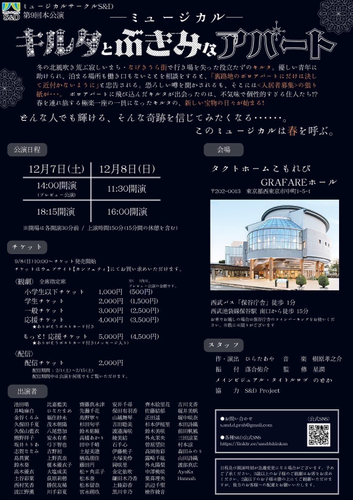 チケット購入12/4(水)23:59まで インカレミュージカルサークルS&Dの完全オリジナル作品『キルタとぶきみなアパート』まもなく開幕