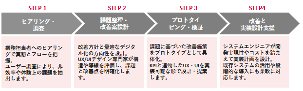 業務フローやITリテラシーに即したUI改善の方向性を導き出しました。