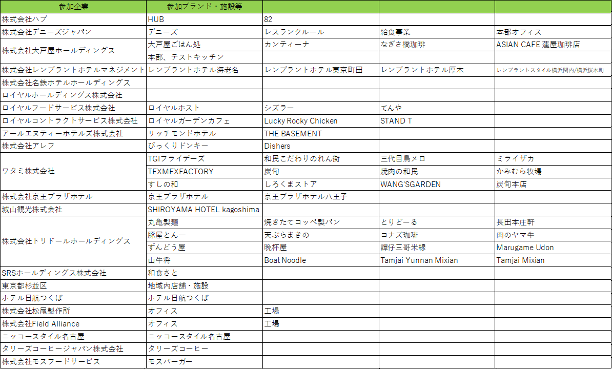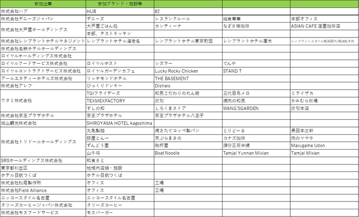 参加企業、ブランド・施設等一覧(順不同)