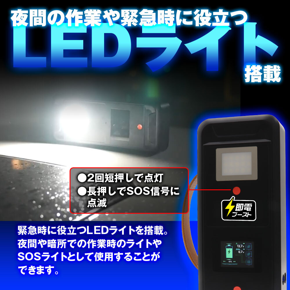 充電いらずで10年使えるスーパーキャパシタ搭載の安全ジャンプスターターです。2500Fの大容量コンデンサを搭載しており、バッテリーレスのため充電不要です。