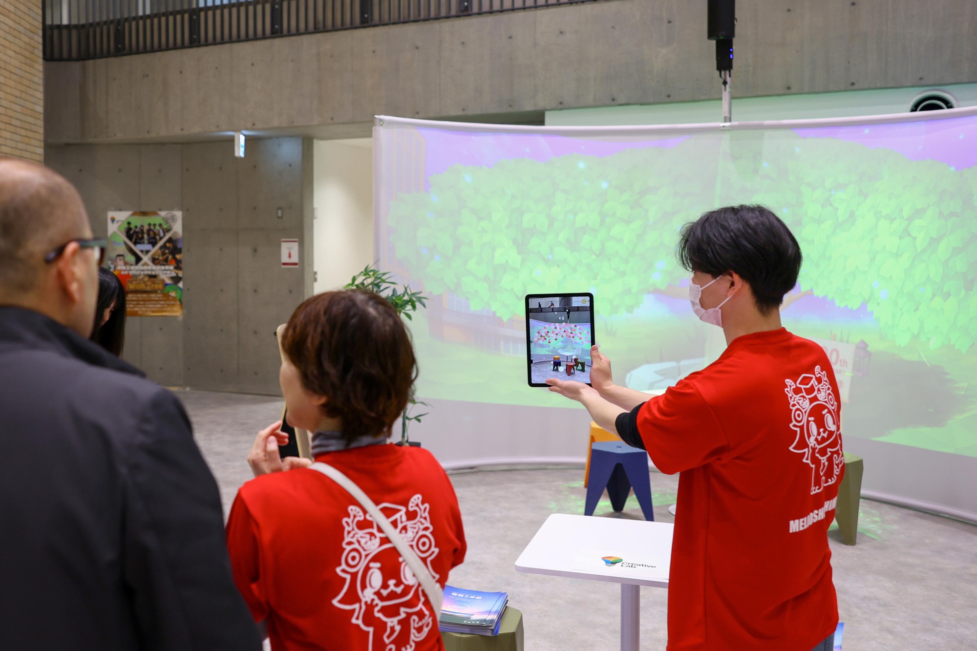 メインアリーナでは午後、学生が夢に向かって挑戦した取り組みを発表する「REALIZE AWARD」が開催され、ファイナリスト6人の熱いプレゼンを披露しました。また、フレックスハブやマルチナ道場では、学生団体による竹箸作りやバスケひろば、子ども向けの運動あそびのコーナー、ライオンズコモンズでは理工学部の大原賢一教授の研究室による人と共存するロボットの展示など多彩な催しが用意され、終日、学生や卒業生はもちろん、近隣の子どもたちや市民でにぎわいを見せていました。