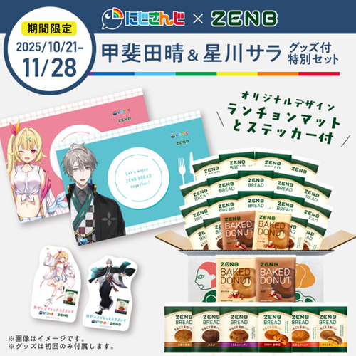 株式会社ZENB JAPAN(ゼンブ ジャパン)(愛知県半田市、以下 ZENB)は、VTuberグループ「にじさんじ」で活動する甲斐田晴さんとのコラボ第2弾として、2025年10月21日(火)~11月28日(金)の期間限定で「オリジナルグッズ付きゼンブブレッド特別セット」を販売します。さらに、10月28日(火)20:00より甲斐田晴さんのYouTubeチャンネルで「甲斐田先生のゼンブブレッド特別授業」を生配信。今回は星川サラさんも生徒として出演し、授業パートから給食の時間まで一緒に楽しめます。また、Xにて対象投稿の中から抽選で計20名にオリジナルQUOカードをプレゼントするキャンペーンを実施します。