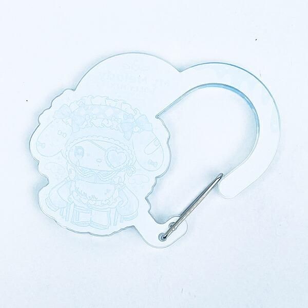 こちらは、アクリルハートカラビナです。ハートの形が、普通のカラビナよりとびきりキュートに見せてくれます。マイメロのダボッとした袖やフリルのエプロンがまたかわいさを際立ちています。サイズは6.5cm×8.4cm×0.5cm