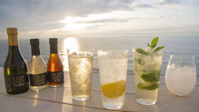 米麹のコクと、沖縄・金武町「山清水」のやさしい甘みが融合し、芳醇な香りとまろやかな味わいが特徴の「古昔の美酒 2007 泡盛(松藤) 」と、淡路島産のレモンシロップを組み合わせたレモンサワーを用意。また、吟醸の熟成古酒で、すっきりとした酸味と、バナナのような甘い香り、白ワインのような味わいが特徴の「古昔の美酒2009 (幻の瀧)」を使用した特製モヒートも提供いたします。普段なかなか堪能できない古酒を使用した期間限定のドリンクを、ぜひご賞味ください。