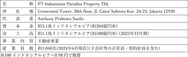 また、当社は本施設の運営・管理にも参画することにしており、インドネシアの大手不動産開発会社であるPT Indonesian Paradise Property Tbk(以下、「INPP」)と共同で行ってまいります。なお、INPPは、2019年7月に当社が出資した「プラザインドネシアコンプレックス」等の共同事業者です。