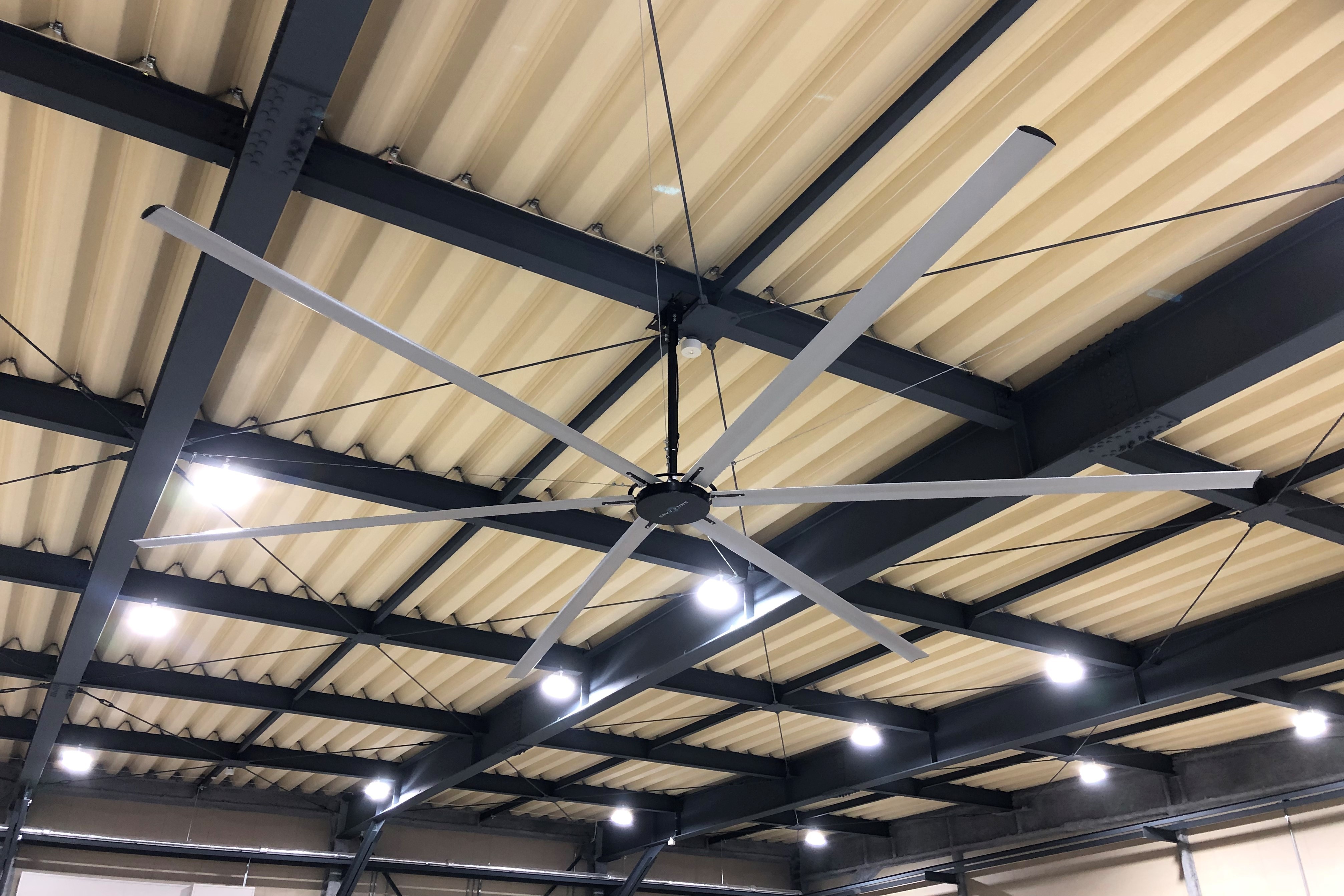 スマイルファンは倉庫・工場・体育館などの空調管理の課題を解決する気流発生装置です。