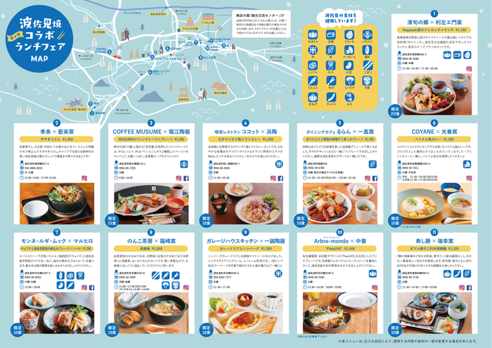 地元飲食店×窯元・商社がコラボするランチフェアが今年も開催します。波佐見町内の飲食店のうち、今年は11店舗がフェアに参加。フェア限定メニューや波佐見焼の盛付け方など、食すだけでは終わらないフェアです♪