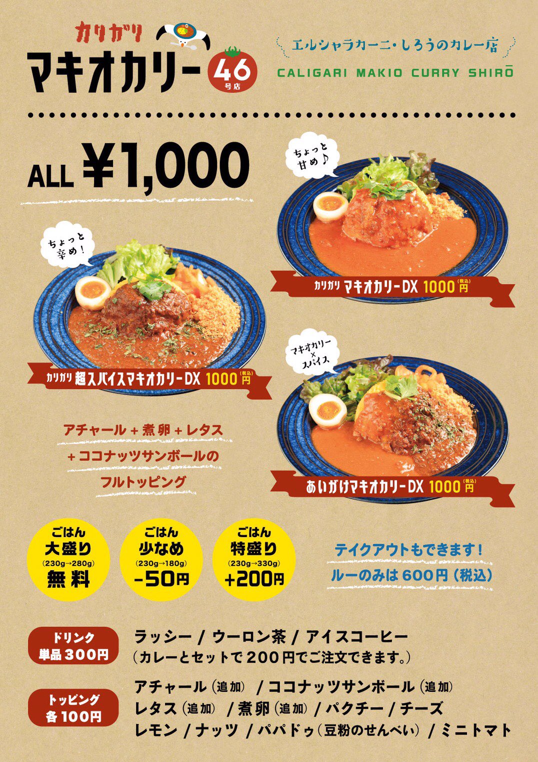 新宿カリガリマキオカリー46号店は、槙尾ユウスケの先輩芸人であるエルシャラカーニの「しろう」が切り盛りする、マキオカリー3号店です。三軒茶屋マキオカリーの意思を継いだ新宿店のカレーを是非一度ご賞味ください!トマト!!
