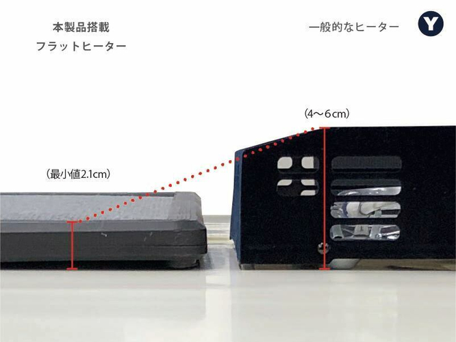 (3)面状のカーボンヒーターなので、ガラス管ヒーターと比べて衝撃に強い。