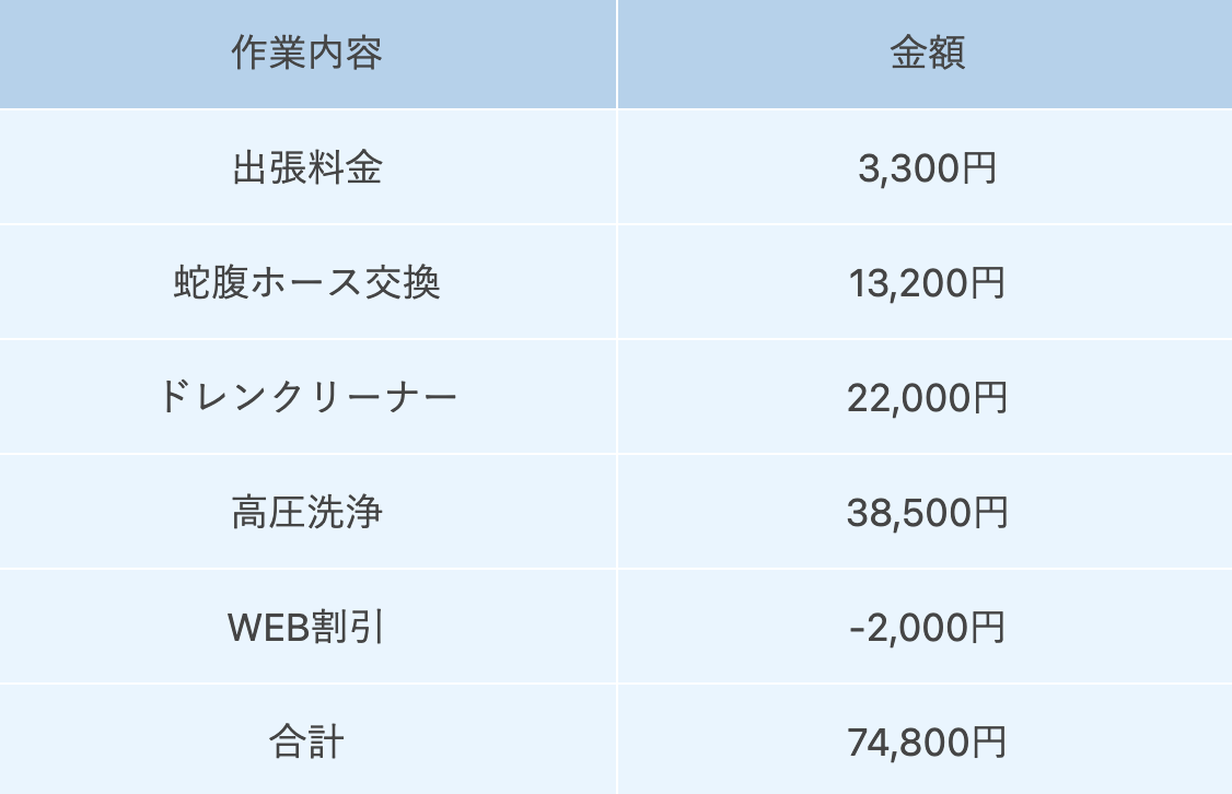 トレイの脱着と、カメラ調査、高圧洗浄 - 料金詳細