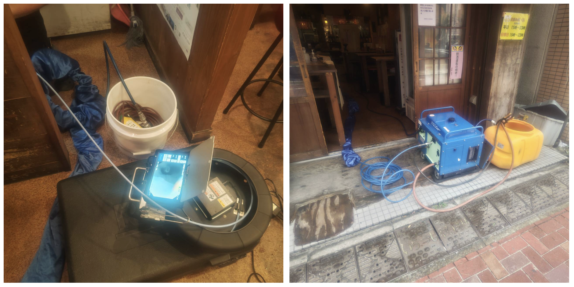 トレイの脱着と、カメラ調査、高圧洗浄の様子