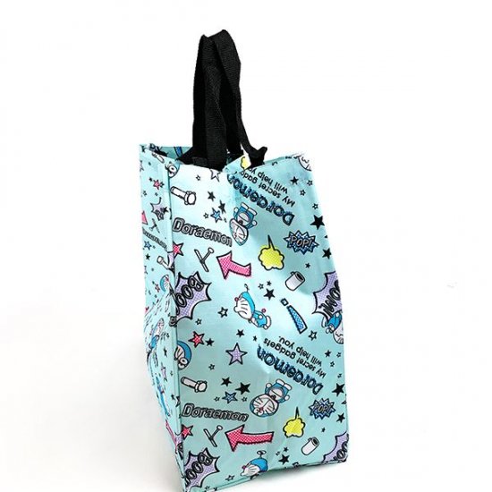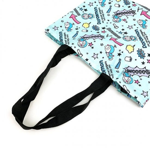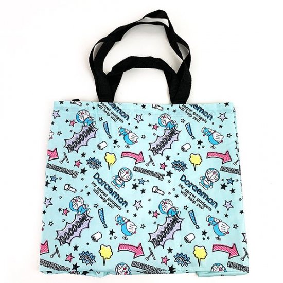 ブルー地にカラフルPOPなドラえもんのデザインがかわいい、エコトートバッグです。お買い物だけに使うのはもったいないくらいのかわいさですね~♪
