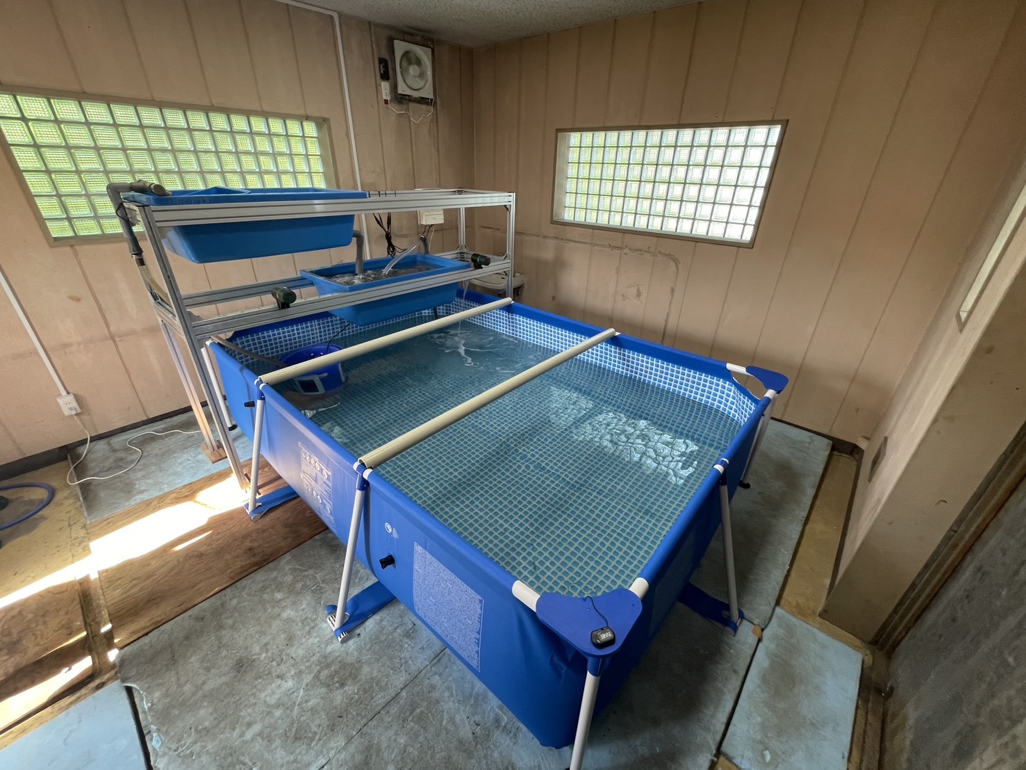 バナメイエビ(注記2)の閉鎖循環式陸上養殖(10月2日に稚エビを投入しました。)