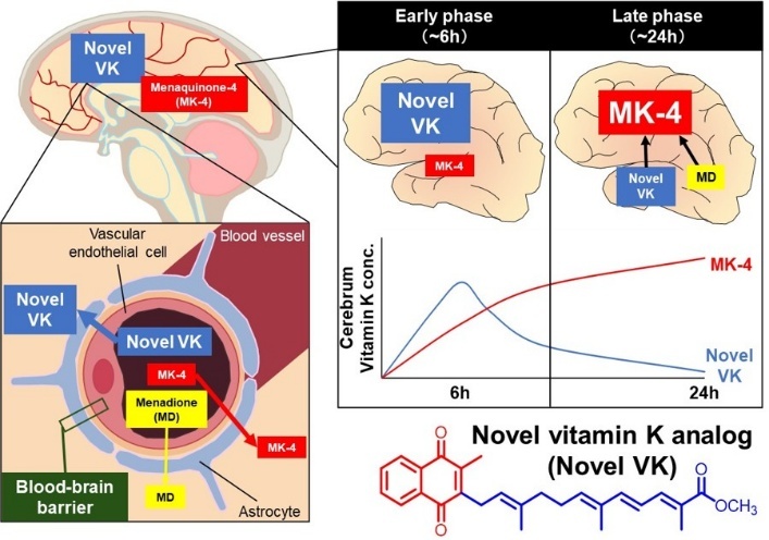 ●誘導体として薬剤の到達を阻害する血液脳関門を通過し、脳内で神経分化を促進。時間経過とともに MK-4へ変換され長時間効果が継続