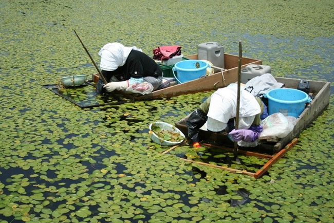 じゅんさいの収穫風景