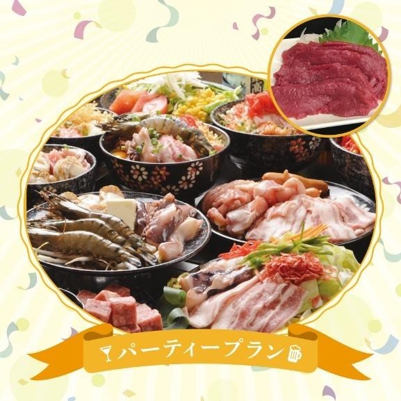 特選馬刺し(ヒレ・ロース)が付いた、3時間食べ放題&飲み放題コース♪ ゆっくりご堪能ください☺