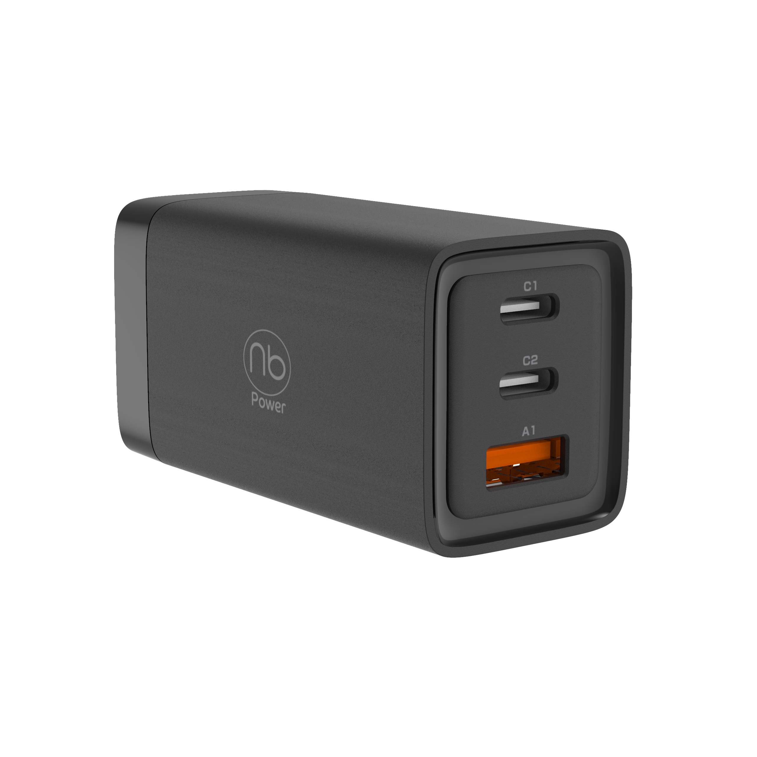 最大65W出力のPD/QC対応3ポート(USB-Cx2/Ax1)急速充電器