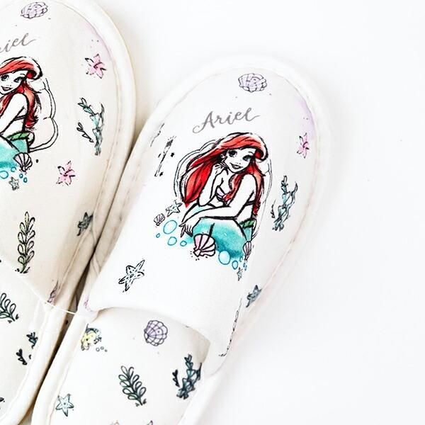 アリエルのスリッパ「シーサイドカラー」は、優しいタッチのイラストを散りばめた、海辺をイメージした可愛らしいデザイン。