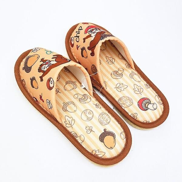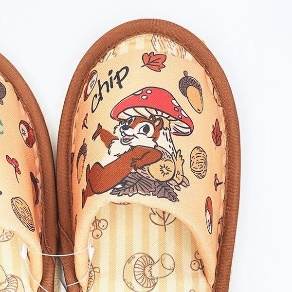 まず紹介するのはこちら、 **チップとデール スリッパ 「オータムトレジャー」** 。サイズは約22cm~24cm対応で、木の実やきのこなど実りの季節をイメージした、温かみのあるデザインです。