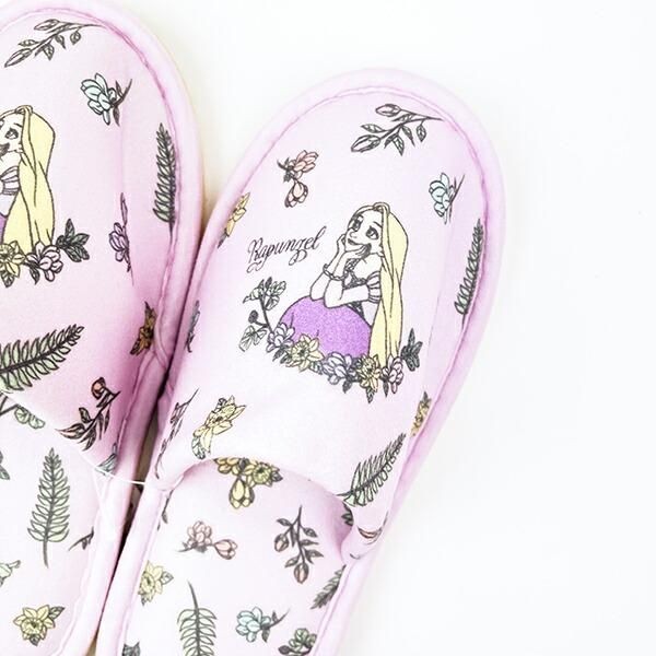 ラプンツェルのスリッパ「フォレストプラント」は、上品なパープルをベースにボタニカルな植物を描いたデザイン。派手さを抑えたエレガントな仕上がりが大人女子にピッタリです。