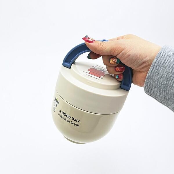 楽しいランチ時間を演出するスヌーピーの折りたたみハンドル付保温丼ジャー