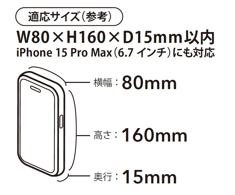 収納できる端末サイズ:横 80 mm × 高 160 mm × 奥行 15 mm 以内