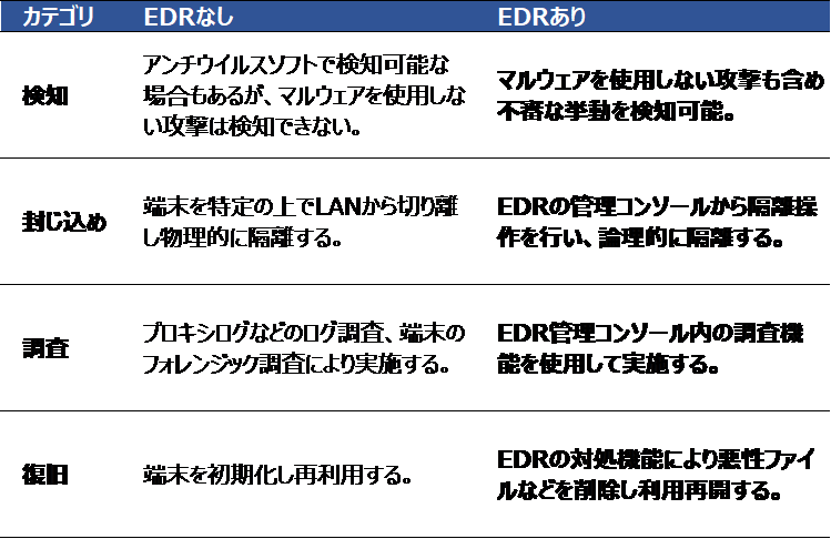 これまでのセキュリティ対策は社内でパソコンを使う前提でしたが、テレワークではパソコンを社外に持ち出すため従来の対策だけでは不十分です。EDR(Endpoint Detection and Response)は、端末における不審な挙動の検知とその対策を行うセキュリティソリューションで、テレワーク環境下の端末においても脅威の検知と迅速な初動対応を実現できます。このEDRを導入するにあたり、導入によるメリットともにどのような観点で製品を選ぶべきかお伝えします。