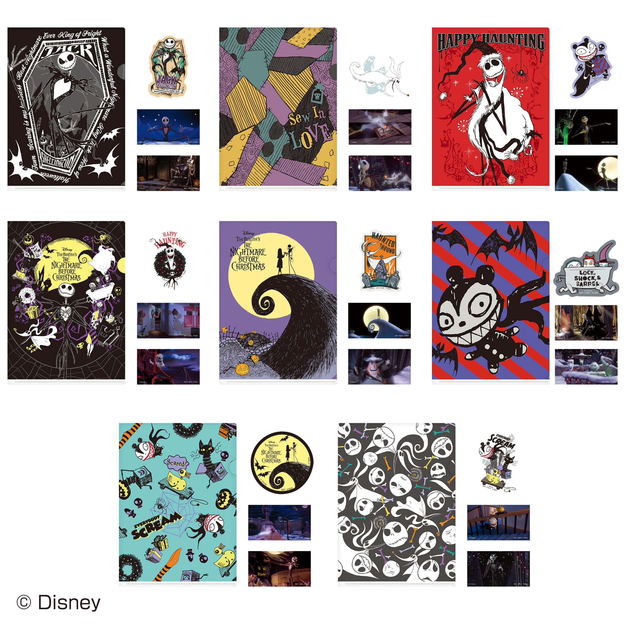 そのほか、フィギュアチャームや作品の世界観をモチーフにしたデザインの選べる巾着アソート、スマホグリップ・ケーブルタイ・マーカーチャームなど実用性抜群のラバーコレクションや、A5サイズのクリアファイルとステッカーのセットなど、いずれもナイトメアー・ビフォア・クリスマスの魅力がたっぷり詰まった商品です。