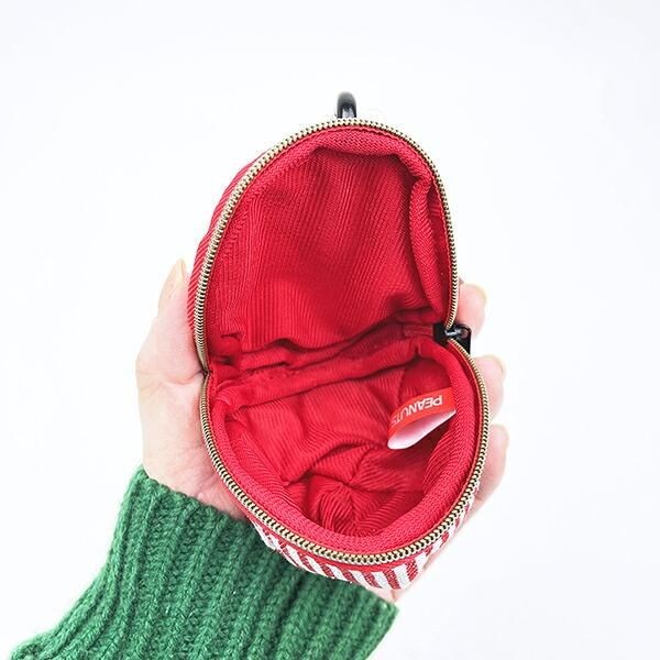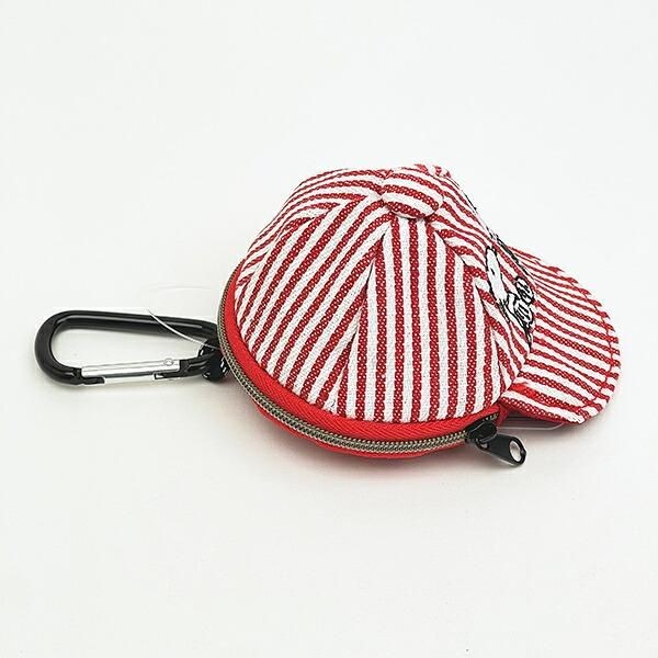 こちらはスヌーピーとアンディの赤のヒッコリー柄のキャップ型ポーチです。