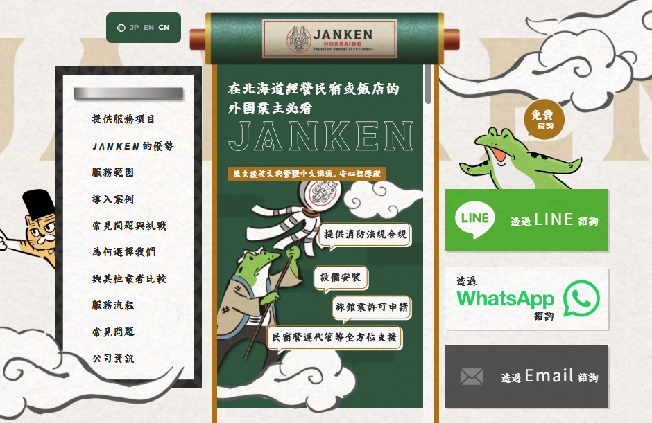 北海道の民泊・ホテル運営を消防法対応からワンストップ支援。 「JANKEN」が日英中3ヶ国語対応の新規サービスLPをローンチ