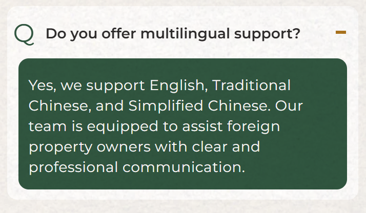 「日本の法律が分からない」「専門業者と意思疎通ができない」という悩みを抱える外国人オーナー様のために、英語・中国語(繁体字・簡体字)が可能なスタッフが直接サポートいたします。また、民泊に関する無料相談は、LINE、メールに加え、WhatsAppからも可能です。オーナー様にとって最も負担の少ない方法をお選びください。