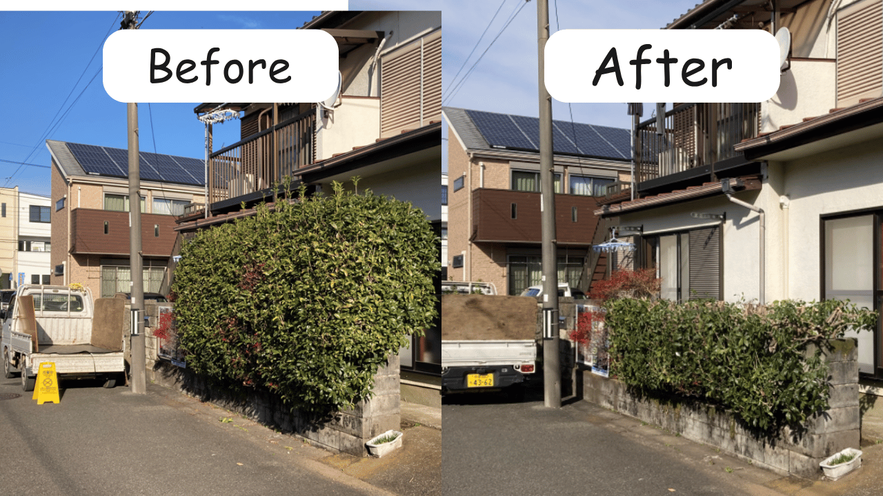 4. 庭木の剪定・草取りなど:庭を放置してしまって草が伸びている場所もスッキリ整えます。