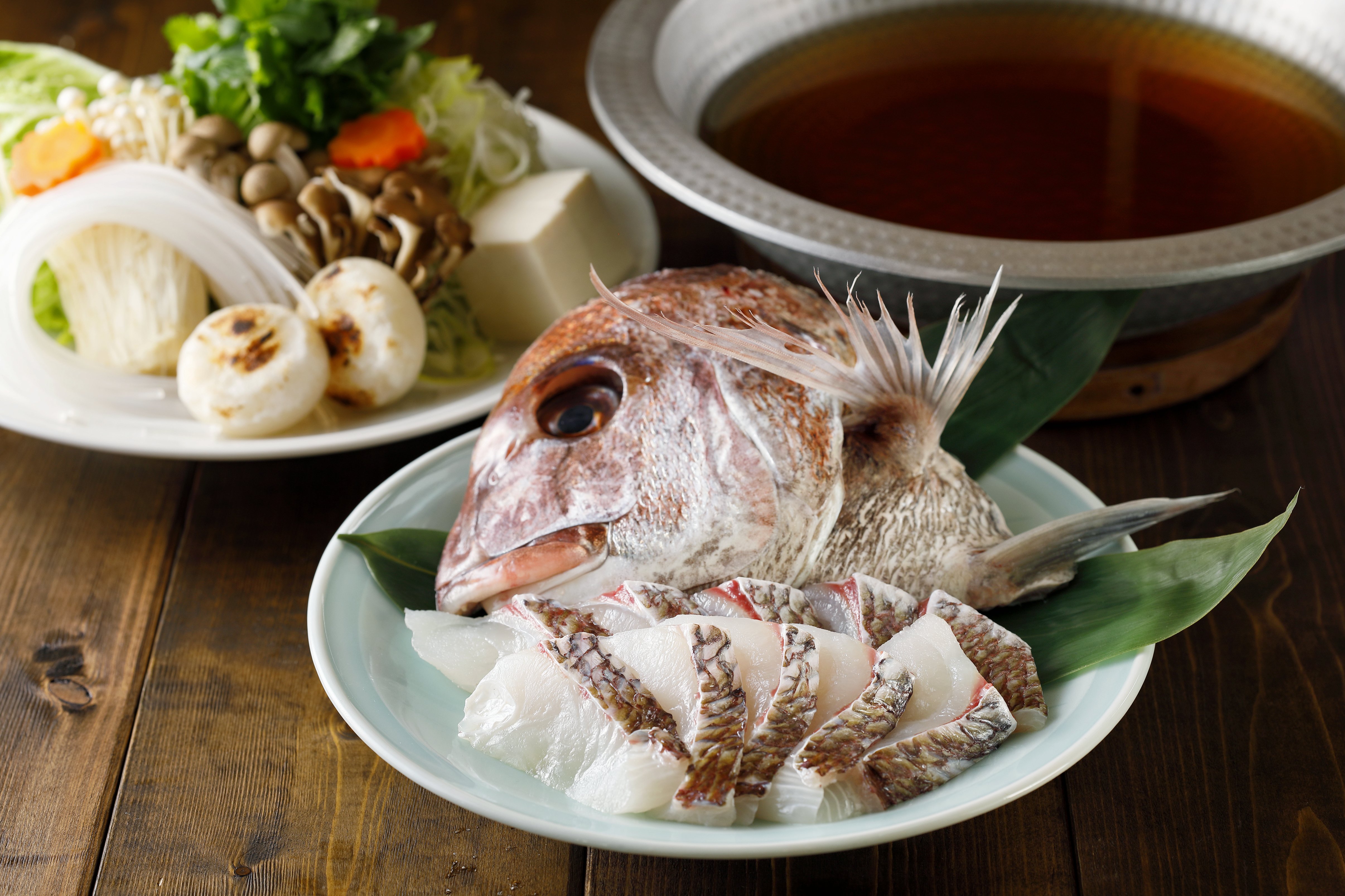 ・天然桜鯛のすきなべ 〆は淡路島の手延べそうめん