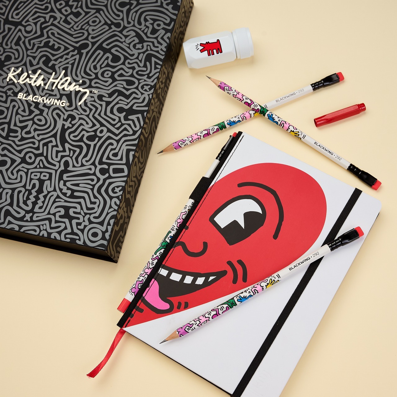 鉛筆、ノートブック、ギフトセット、アクセサリーの随所に、彼の象徴的なアートワークをあしらい、ブラックウィングならではの上質な筆記体験と融合しました。