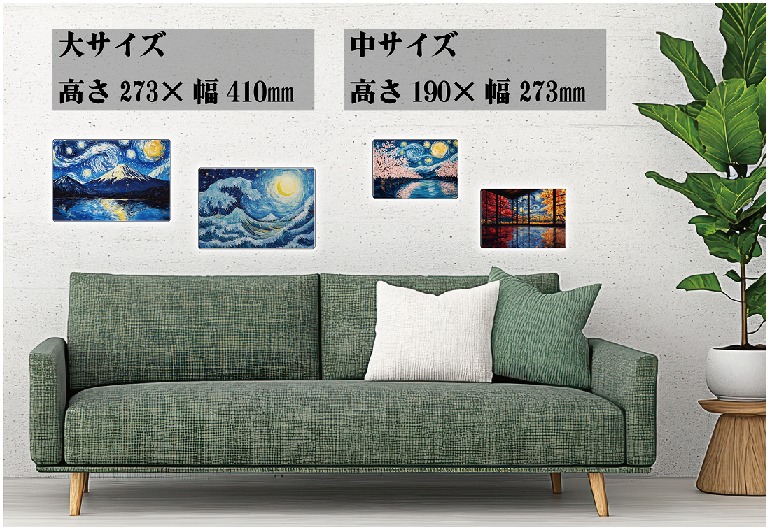 アートは空間を彩り、日々の暮らしに新たな価値を加えてくれるものです。しかし、「高価で手を出しづらい」「どのアートを選べば良いかわからない」と感じる方も多いのではないでしょうか。そこでゴッホの「星月夜」をテーマに、日本の自然や四季を重ね合わせた魅力的なアートデザインをお届けし、より多くの方に手軽にアートを楽しんでもらいたいとの想いから本プロジェクトを企画しました。