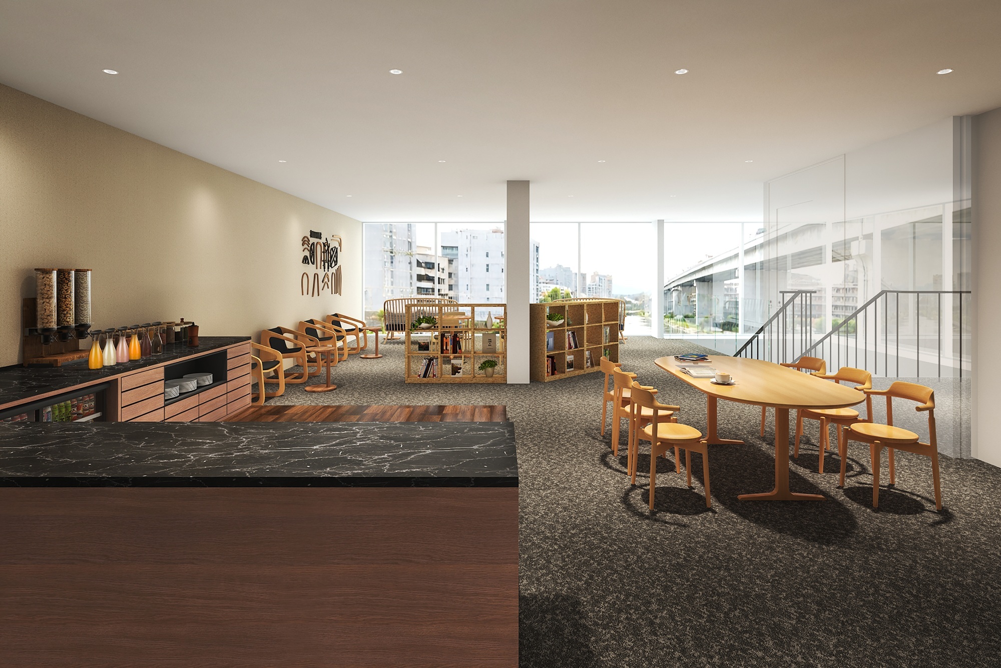 愛知・名古屋ゆかりのドリンクや軽食を自由に楽しめる宿泊者専用ラウンジ。