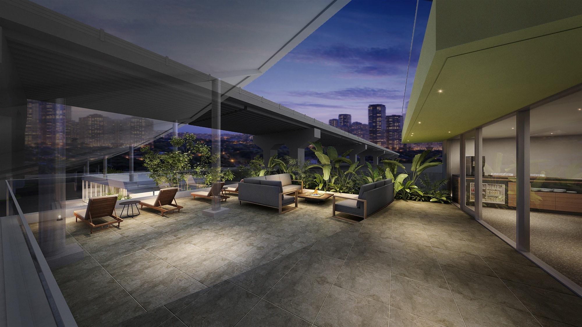 名古屋高速の光と、中川運河の水面、やわらかな風が重なり合う空間です。
