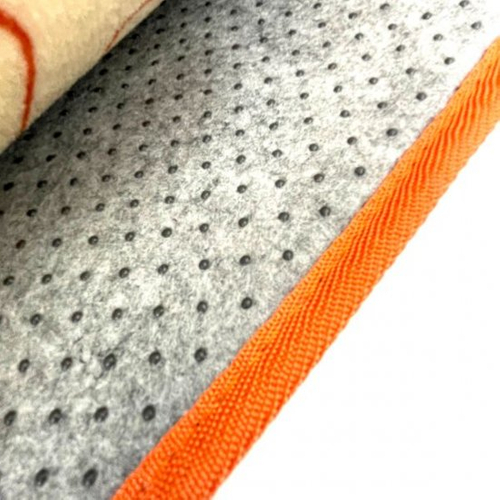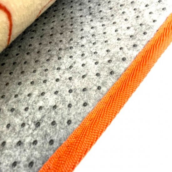 ベージュにオレンジのフチ取りのされたマット!優しい色合いでありながら存在感もあるのでお部屋のアクセントになりますよ☆
