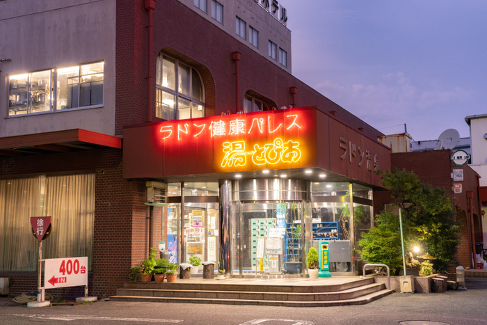 人魚の看板が目印の「竜王ラドン温泉 湯ーとぴあ」